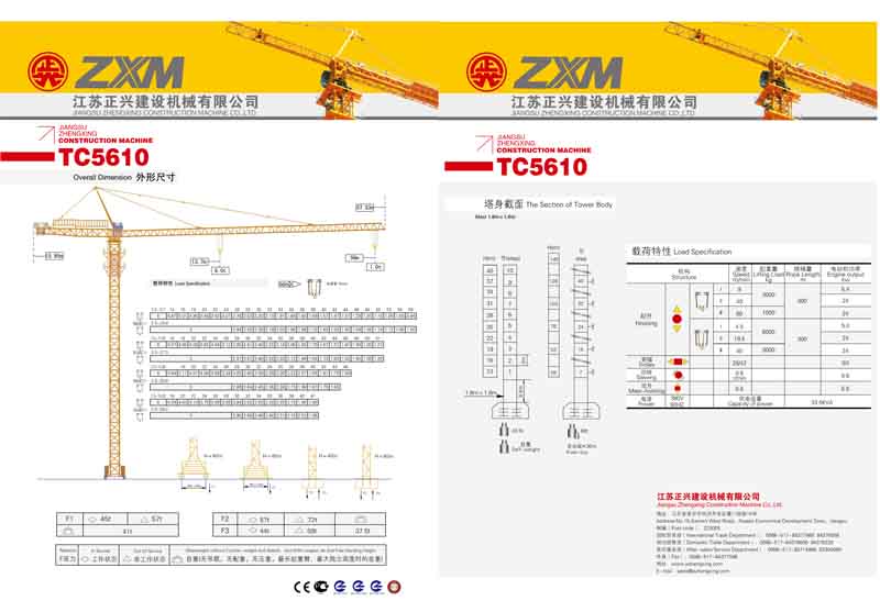 2、最大工作幅度56米,最大起重量6噸,額定起重力矩630KN.M;